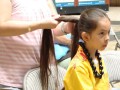 Andrea Tolentino assists Kianna with her hair.