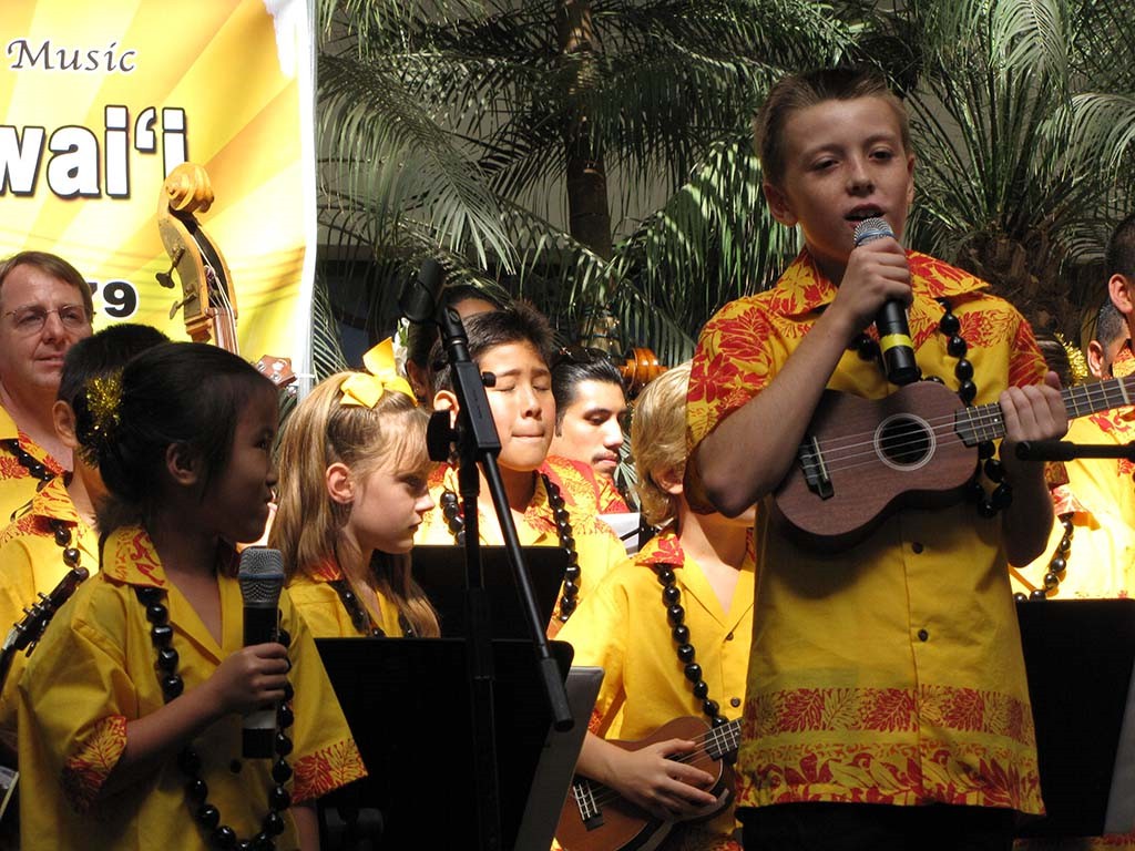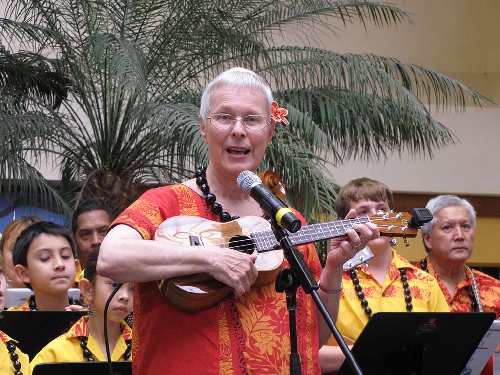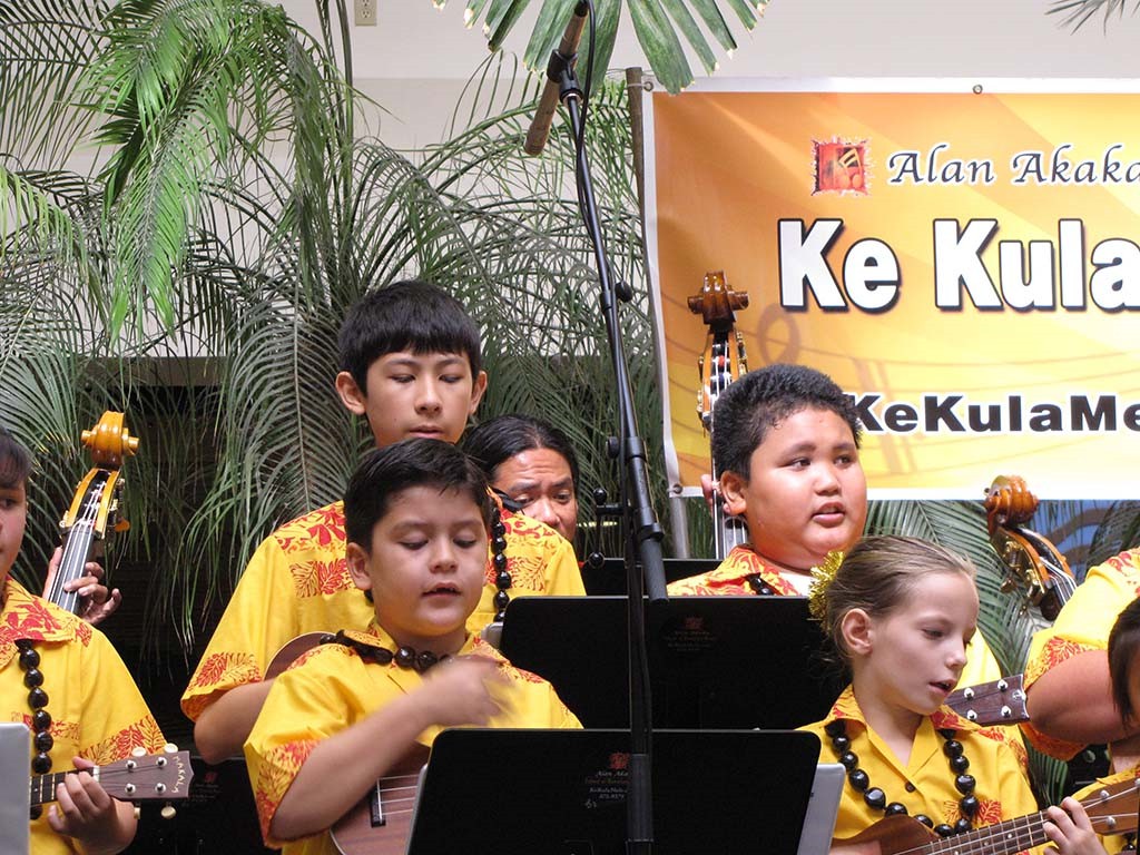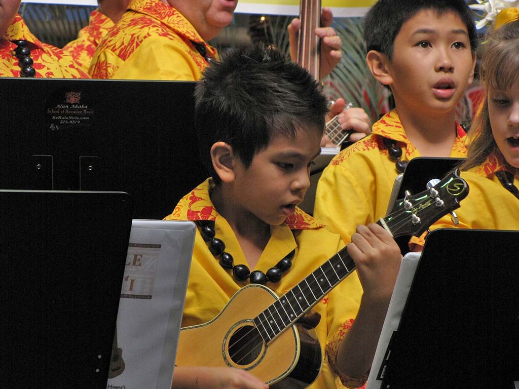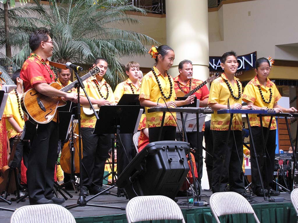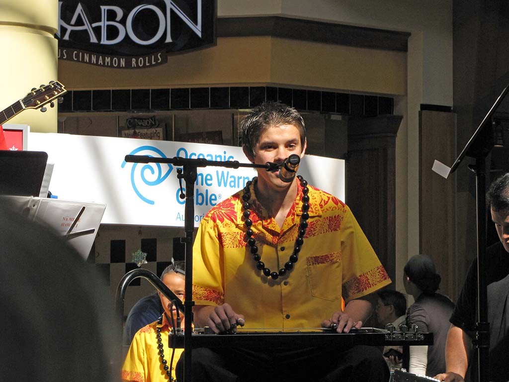 The annual Winter concert was presented by the haumana of Ke Kula Mele School of Hawaiian Music at the Windward Mall on December 26, 2011. The concert featured a collection of traditional Hawaiian songs, Christmas carols, and some "fun" songs such as "Menehune Beach Bum Boogie," "Hawaiian Roller Coaster Ride," and the theme from Hawaii 5-0. A steel guitar ensemble featuring eleven steel guitarists performed an arrangement of Makalapua.