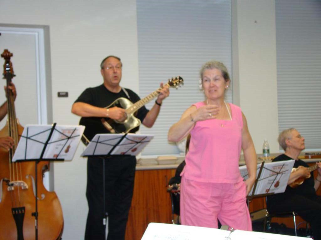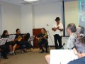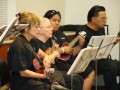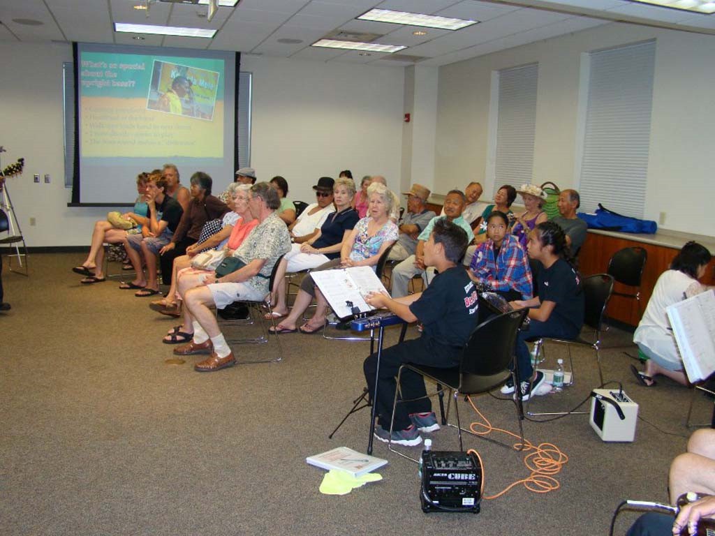 The demonstration/presentation was well attended. Steel guitarists Raven Young, Alexis Tolentino, and Mikaela Nishida are in the foreground.