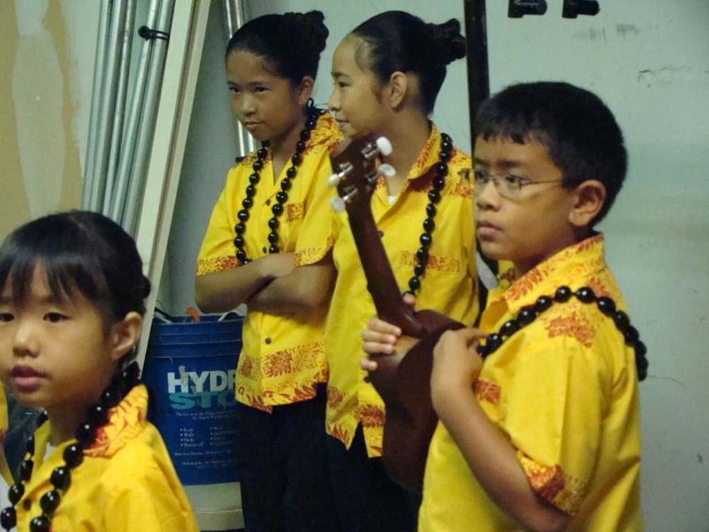 'Ukulele keiki chat before the performance.