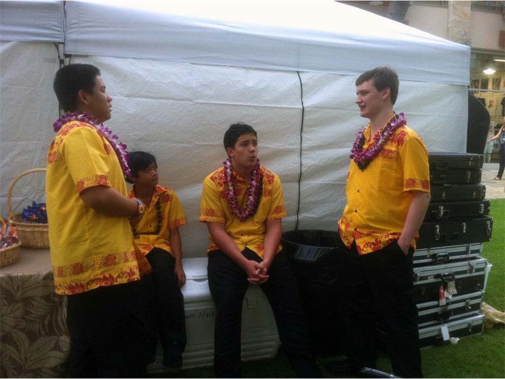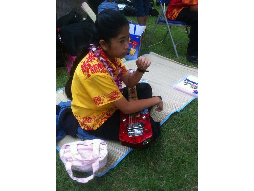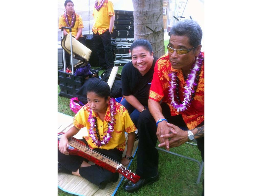 Next Generation steel guitar students of Ke Kula Mele Hawaii School of Hawaiian Music participated in the 3rd annual Hawaiian Steel Guitar Festival at Waikiki Beach Walk on June 17, 2012. The Next Generation steel players were backed up by the Ke Kula Mele Ensemble including Ronald Tolentino and Leroy Ne on bass, Jamie Umanzor and Keala Akaka on 'ukulele, and Henry Wassman III and Addison Ching on guitar.