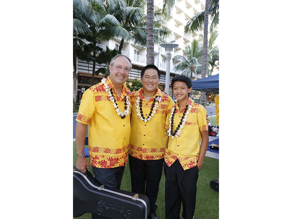 Kumu Alan Akaka with Next Gen steel guitarists Sid Pang and Alexis Tolentino.