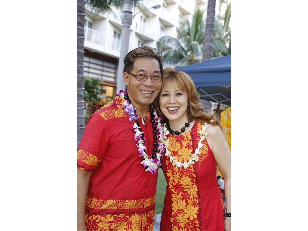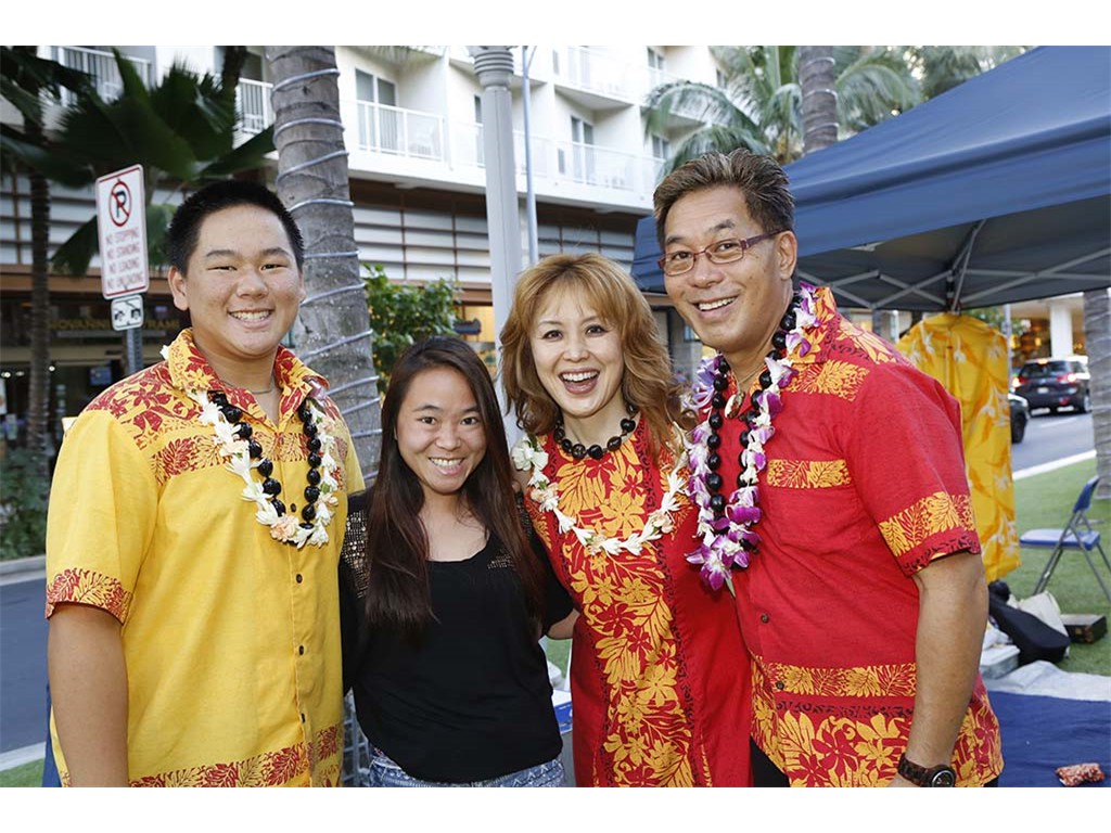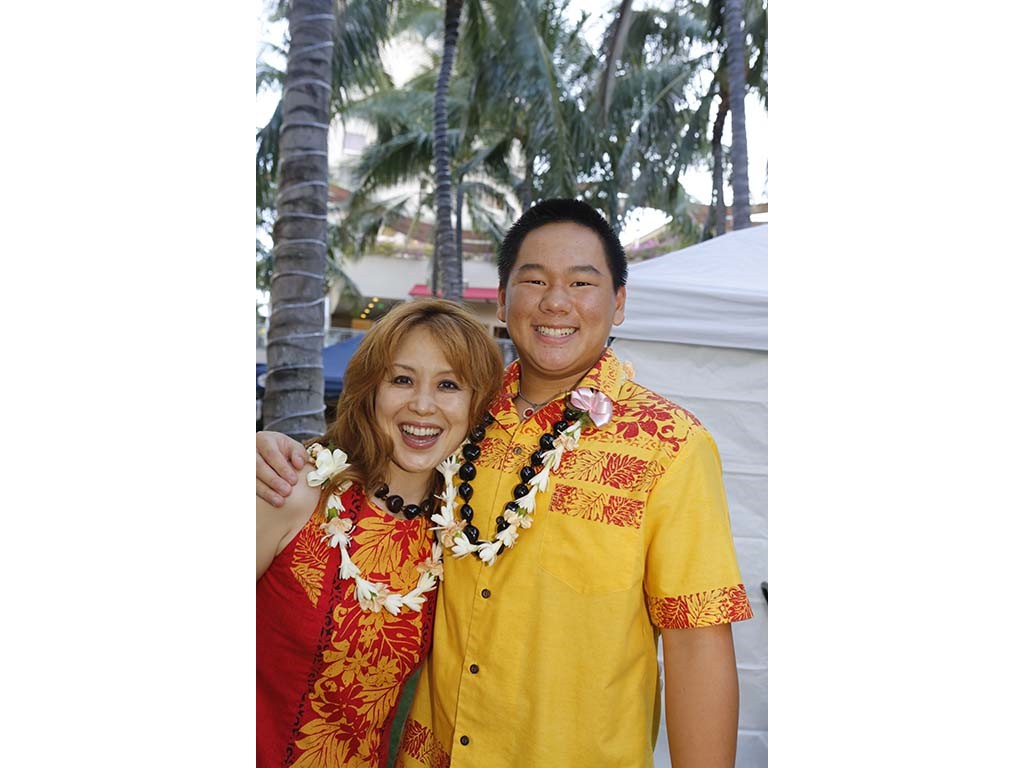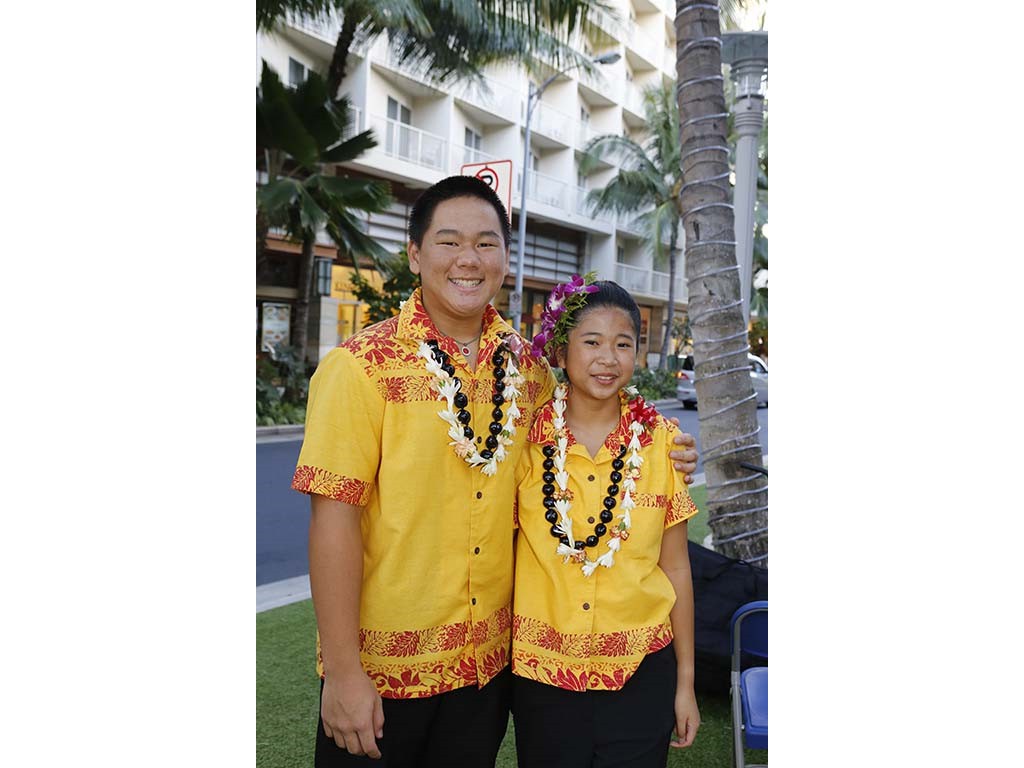 Next Gen steel guitarist Sid Pang and Ke Kula Mele 'ukulele student Sammi Pang with MIchiko and Alan Akaka.