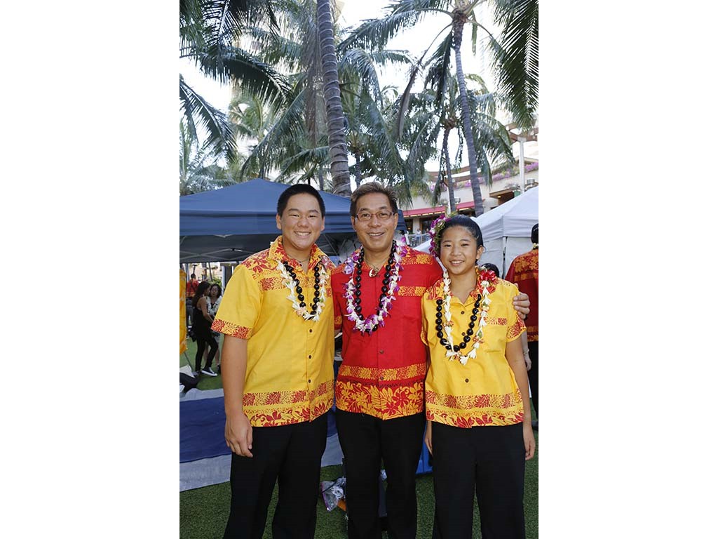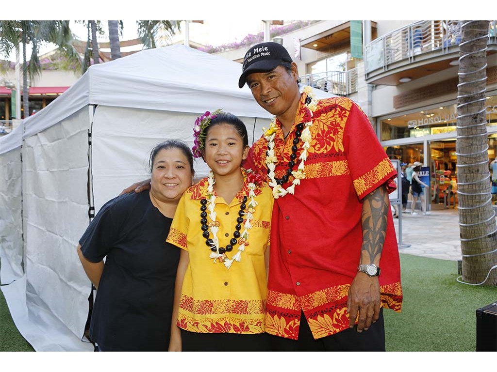 Next Gen steel guitarist Alexis Tolentino with her parent, Ke Kula Mele assistants Andrea and Ronald Tolentino.