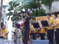Kumu Alan Akaka introducing the group. Quincy Maka'awa'awa on the steel guitar, Ronald Tolentino on upright bass, with 'ukulele players Alexis Tolentino, Cristina Villanueva and Sid Pang.