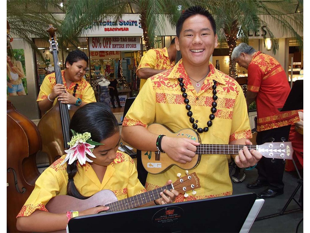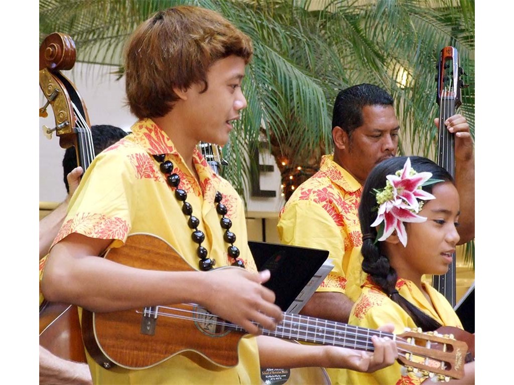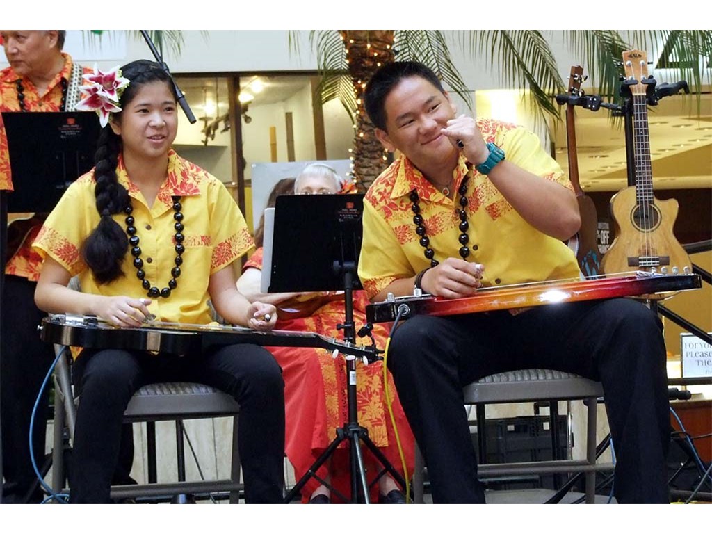 Ke Kula Mele Hawai‘i School of Hawaiian Music was asked by the Windward Mall to present an encore concert on Martin Luther King day on January 20, 2014. Select haumana performed Hawaiian and contemporary selections, all featuring one or more steel guitars.