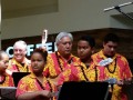 Shirley Holu sings with Larry Holu on steel guitar and Alan Akaka on guitar. Also in picture are Kenji, Bob Beard, and Makoa on ʻukulele. Photography by Sharon Ching ©2014 by Ke Kula Mele Hawai‘i.