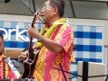 The steel guitarists from the opposite end. From left: Mary Souza, Luana Macariola, Robert Antonio, Tim Huie, Alexis Tolentino, Mālie Lyman, Joey Misailidis, and Larry Holu with Pono Fernandez on the stage. Photo by Don Touchi.Photos by Addison Ching, Sharon Ching, and Don Touchi. Photography by Don Touchi ©2017 by Don Touchi Photos. All photos ©2017 by Ke Kula Mele Hawai‘i.