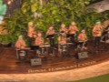 The performers from a second-story view of the stage.