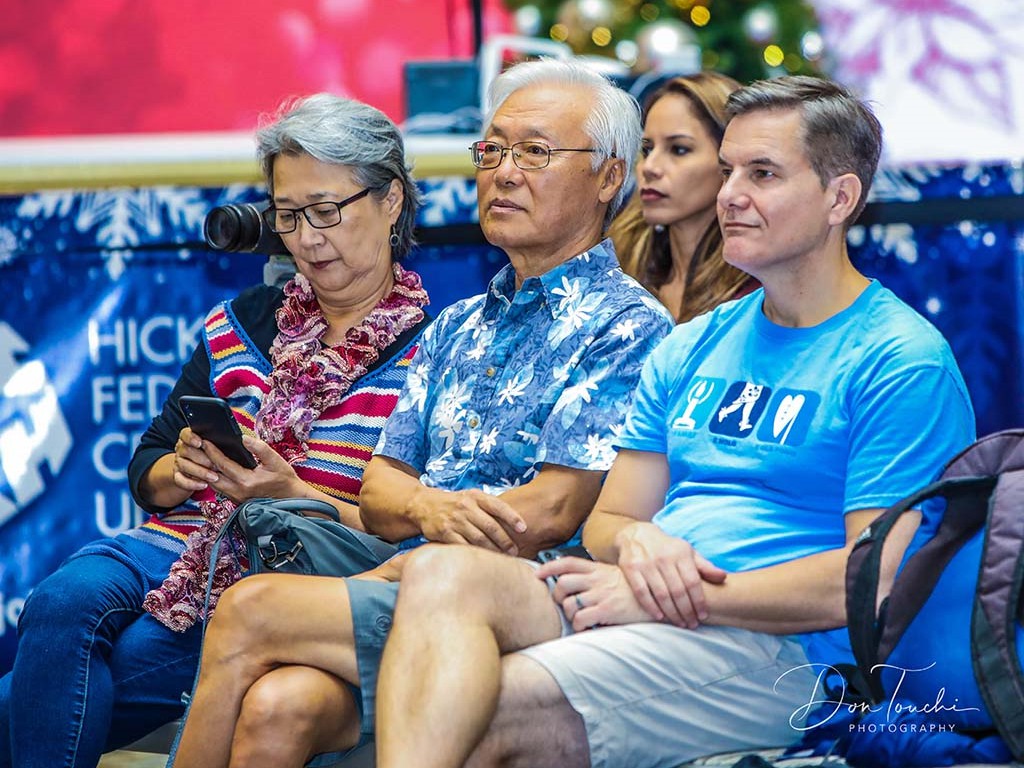 Cho-Kyoung and Young Choi and John Misailidis, family of Tai and Joey Misailidis. Pomaikaʻi Lyman, mother of Mālie Lyman, is in the back.