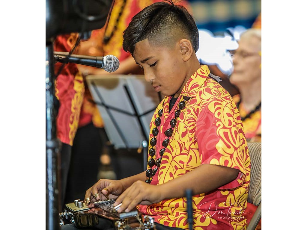 Kumu Alan Akaka acoompanied the school on his guitar.