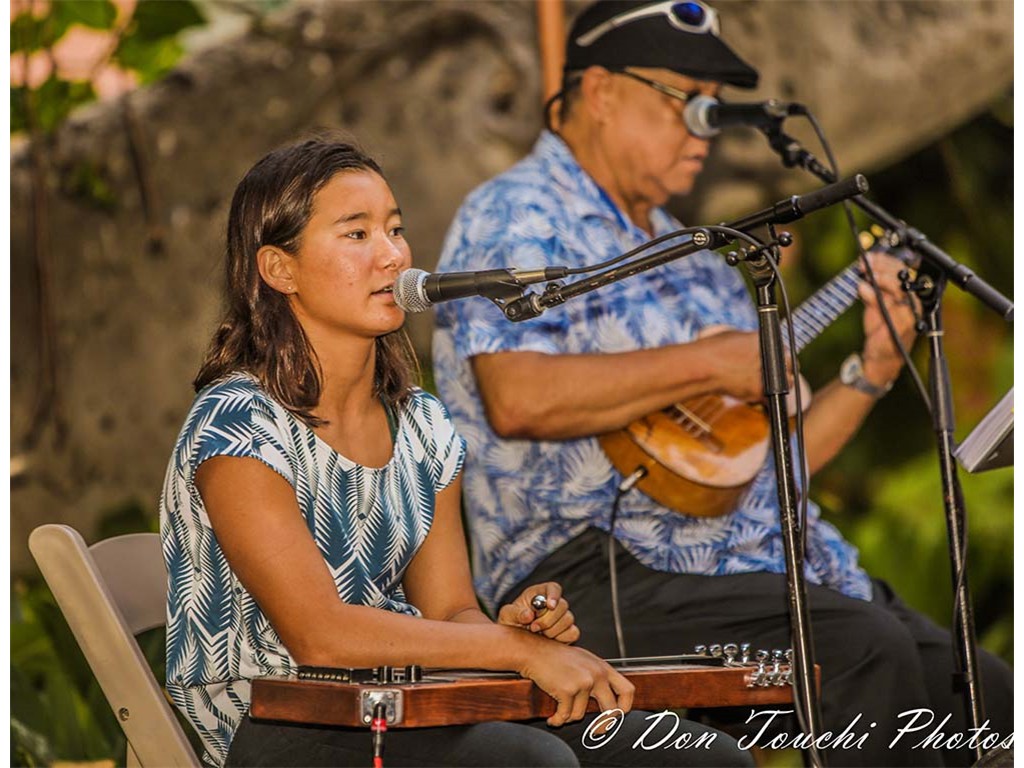 Ke Kula Mele Hawai‘i NextGen steel guitarists isabella Bertelmann, Makamae Lyu-Napopeon, Tai Misailidis, Pono Fernandez, Joey Misailidis, and Ethan Goore were featured in a one-hour performance on Monday, July 11, 2022, as one of the 2022 Waikīkī Steel Guitar Week's Monday-Thursday nightly concerts.